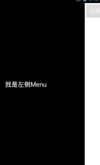 <?xml version="1.0" encoding="utf-8"?> <RelativeLayout xmlns:android="http://schemas.android.com/apk/res/android" android:layout_width="match_parent" android:layout_height="match_parent" android:background="#000000" > <LinearLayout android:layout_width="match_parent" android:layout_height="wrap_content" android:layout_centerInParent="true" android:orientation="vertical" > <TextView android:layout_width="wrap_content" android:layout_height="wrap_content" android:layout_marginLeft="20dp" android:text="我是左侧Menu" android:textColor="#ffffff" android:textSize="20sp" /> </LinearLayout> </RelativeLayout>