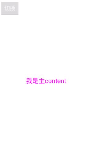 <RelativeLayout xmlns:android="http://schemas.android.com/apk/res/android" android:layout_width="match_parent" android:layout_height="match_parent" > <com.demo.slide.SlidingMenu android:id="@ id/id_menu" android:layout_width="match_parent" android:layout_height="match_parent" > <LinearLayout android:layout_width="wrap_content" android:layout_height="match_parent" android:orientation="horizontal" > <include layout="@layout/left_menu" /> <LinearLayout android:layout_width="match_parent" android:layout_height="match_parent" android:background="#ffffff" > <Button android:layout_width="wrap_content" android:layout_height="wrap_content" android:onClick="toggleMenu" android:text="切换" /> <TextView android:layout_width="wrap_content" android:layout_height="wrap_content" android:layout_gravity="center" android:layout_marginLeft="20dp" android:text="我是主content" android:textColor="#ff00ff" android:textSize="20sp" /> </LinearLayout> </LinearLayout> </com.demo.slide.SlidingMenu> </RelativeLayout>